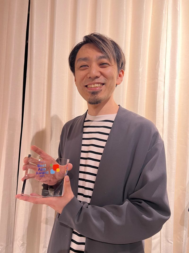 『Langaku』の山中がBest App Award2025の受賞トロフィーを受け取りました